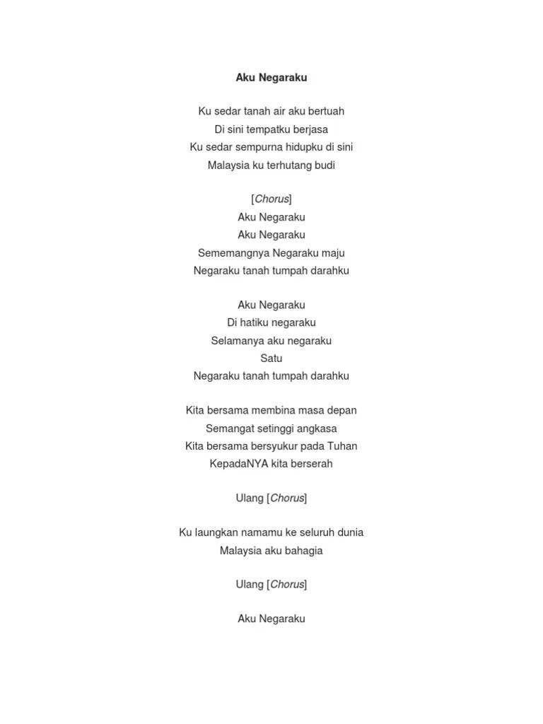 Negaraku / negaraku / ku beri sepenuhnya / ku beri sepenuhnya, ini negaraku / oh darahku / hiduplah sepenuhnya / dirgahayu semua / kalau . Faizal tahir · song · 2016. Listen to negaraku on spotify. Dial *131*537579# and press call/sendcelcom call me . Learn every word to your favourite song!
